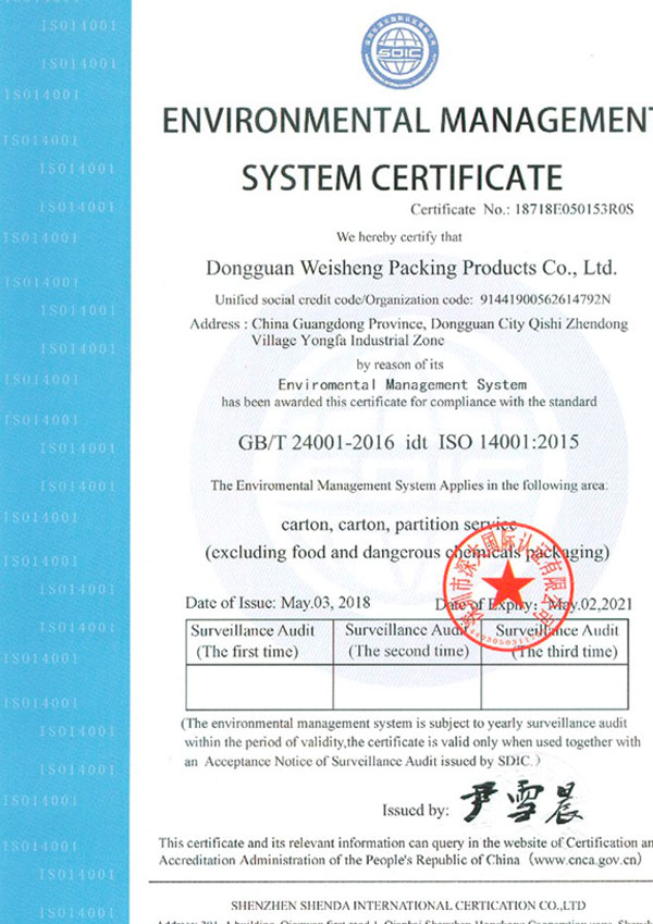 東莞市偉盛包裝制品有限公司成立于2010年,已通過ISO9001質量體系和ISO14001環境體系認證,公司占地面積5000平方米,十幾年的發展,公司一直致力于紙箱、紙盒、啤盒、彩盒、飛機盒等紙制品,廣泛應用于電子,家私、工藝品、燈飾、五金、塑膠等產品的包裝上,歡迎新老客戶致電垂詢。
